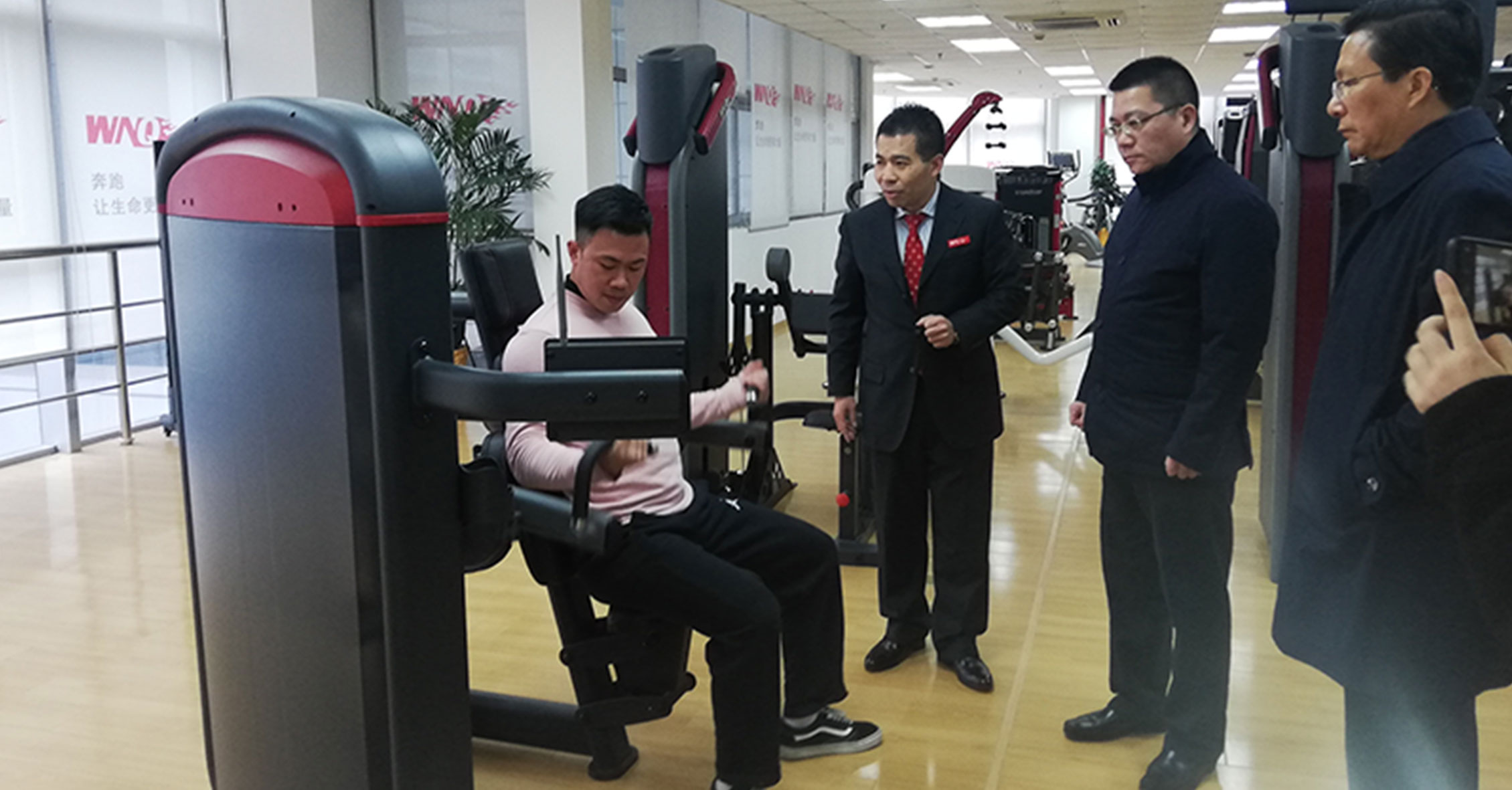 最后,许副局长一行与我司总裁刘严雄及公司高管们在会议室进一步座谈,我司总裁刘严雄向领导汇到了谈求吧近几年的发展近况和今后的规划,刘总裁表示作为“上海市体育示范单位”,我们全体员工一定会更加努力,不辜负大家的期望,领导们深表认可。许副局长一行对全民健身未来发展和智能化健身提出了很多指导性的意见,我司受益良多。