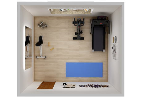 家庭健身房的总体规模要比普通单位健身房要小,由于场地面积小(通常5-30平米),器材种类要满足家庭成员的不同健身需求。谈求吧作为专业的健身器材制造商,帮助客户对家庭健身房的场地布局及规模进行分析与规划,并提供完善的配置清单与器械